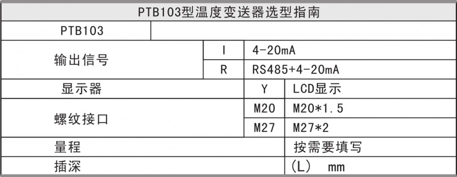 PTB103采用進口溫度敏感元件,經過專用集成電路處理,輸出4-20mA電流信號及RS485數字信號。產品具有精度高、穩(wěn)定性好、壽命長、可靠性高、安裝方便等特點。適用于石油、化工等行業(yè)進行流體溫度的測量。